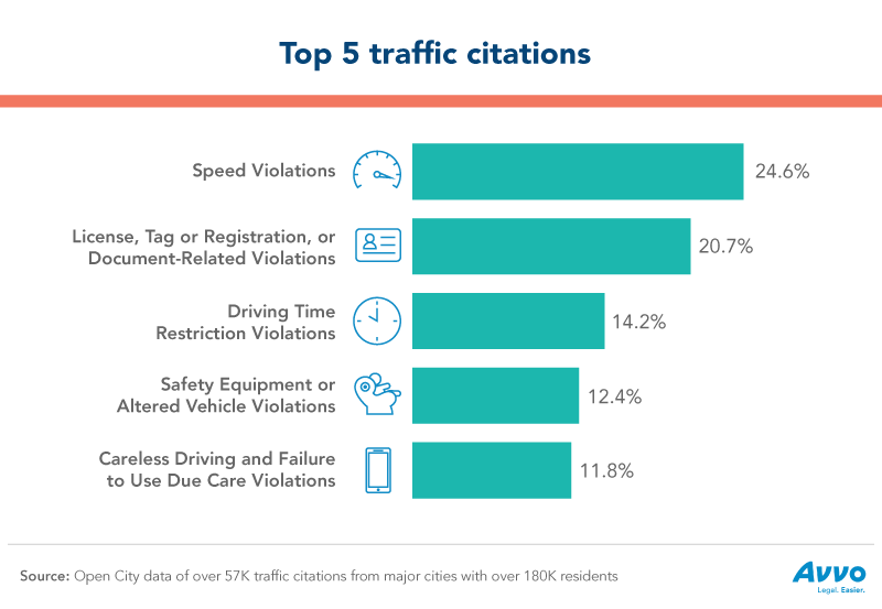 Other common violations included safety equipment or altered vehicle issues and driving with a learner’s permit outside of designated hours. The former category would ostensibly refer to vehicles that lack basic safety tools such as seat belts or headlights or cars that have been adjusted and violate a state or local traffic law. Careless driving or failure to use due care violations also accounted for more than 11 percent of all tickets issued; these terms refer to a broad array of irresponsible driving behaviors.